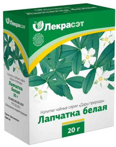 У этого растения множество неофициальных названий: перстач, пятилистник, пятиперстник и пр., но оно больше всего известно, как лапчатка белая. Главной биологической особенностью этого представителя флоры является то, что его корень примерно в 3 раза длиннее «наземной части». И именно корневище представляет наибольший интерес для народной медицины. Примечательно, что при наличии возможности это травянистое растение можно вырастить самостоятельно, хотя, лапчатка белая в аптеках свободно продаётся в разных формах (таблетированные препараты, фильтр-пакеты, настойки, фасованное сырьё), поэтому вам незачем себя утруждать.Химический состав корневища