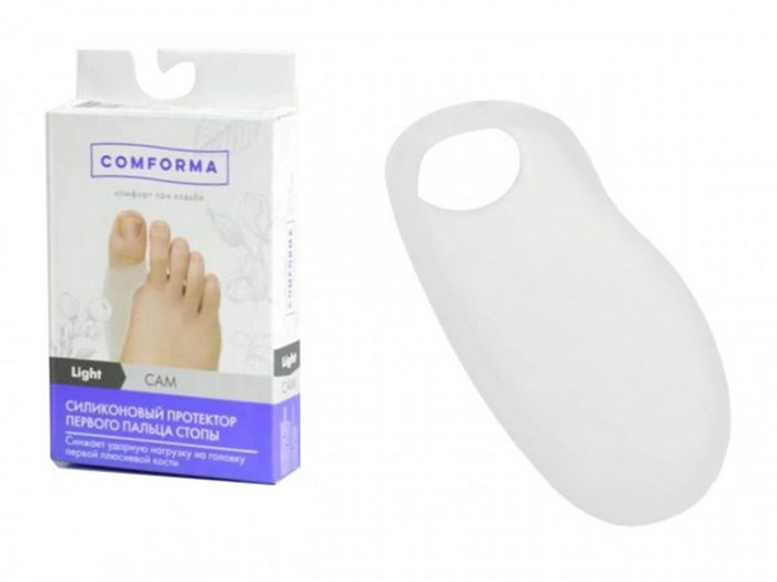 - защищает от давления при деформационных изменениях первого пальца стопы;